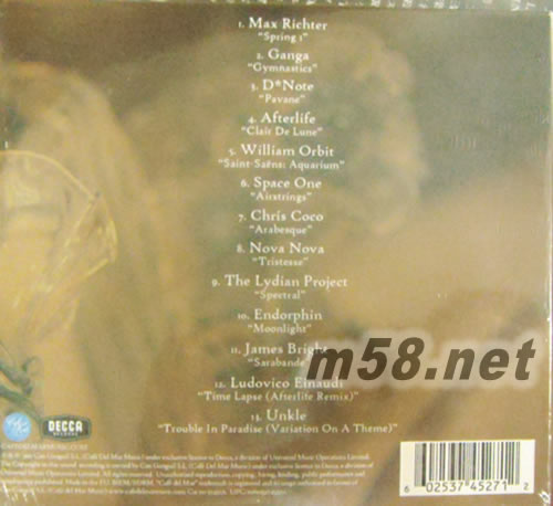Classical 跳舞音樂名牌 古典篇音樂新風格(m58.net) 1980年初,Del Mar咖啡館建成于依比薩島海岸邊,其極具特色的裝潢建筑與令人神往的日落馬上吸引了許多游客. 伴隨著優美景致應運而生的音樂文化范圍涵蓋了爵士、藍調、古典、電子等, 自此日落和音樂便成為Cafe Del Mar的一部分. 1980年代末,以錄音帶方式發表的音樂合輯開始發售;1994年,英國電子音樂廠牌React正式發行以Cafe Del Mar音樂為主題的第一張CD,收錄了如Underworld A Man Called Adam等知名電子音樂藝人的作品.隨著這張合輯的成功,1995、1996年夏季又推出了Cafe Del Mar Vol.2和Vol.3. 商業上的成功使得英國寶麗金公司再度于1997 和1998年分別推出了Cafe Del Mar Vol.4和Vol.5,而這5張合輯共約120萬張銷量.今天Cafe'Del Mar除了是Ibiza的代表外,同時也是美麗日落的代名詞,如今更變成了一種音樂的代名詞,甚至為時尚的談論話題。