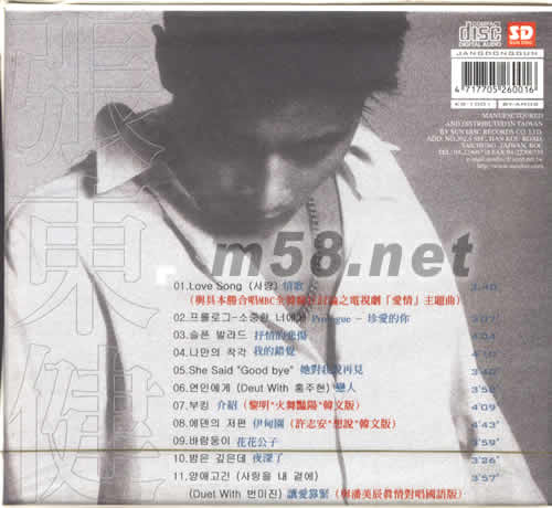 1、情歌 2、珍愛的你 3、抒情的悲傷 4、我的錯覺 5、她對我說再見 6、戀人 7、介紹(黎明“火舞艷陽”韓劇版) 8、伊甸園(許志安“想說”韓文版) 9、花花公子 10、夜深了 11、讓愛靠緊(與潘美辰真情對唱國語版)