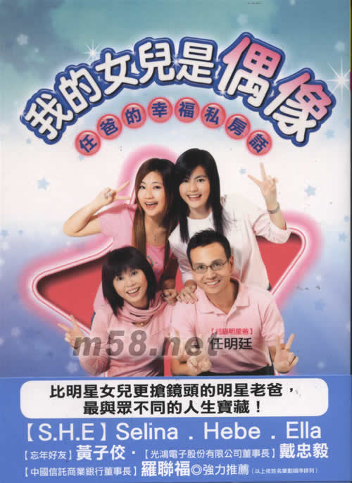 我的女兒是偶像(m58.net) 作者介紹【超級明星爸】 任爸本名任明廷,他是S.H.E成員Selina的『星爸』,也是具有藝人身分的『爸爸明星』。 五十五歲時主持『娛樂@亞洲』一鳴驚人,不但成為演藝圈最高齡的『新人』,閱歷豐富又擅長看面相的他,也變成了藝人和觀眾們都信賴的人生咨詢好朋友──任爸。 獅子座的任爸雖然工作經歷多波折,卻總是能夠樂觀克服困境。他曾經當過錢多事少的公務員、辛苦打拚的業務員,還做過知名計算機公司的高階經理,甚至曾赴美國及荷蘭工作,人生閱歷豐富又精彩。