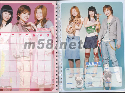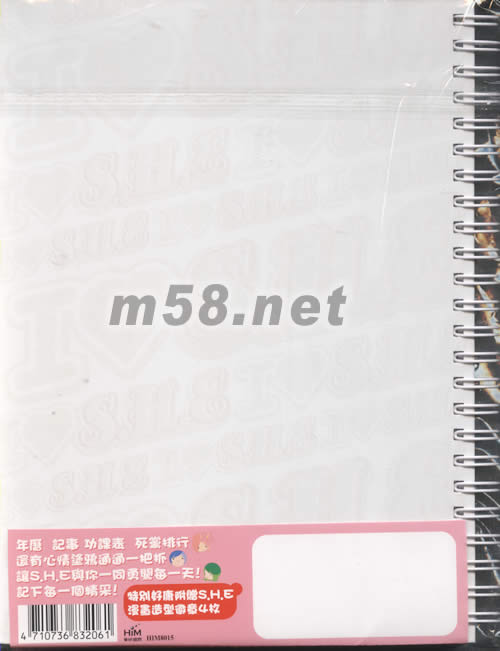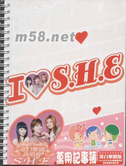 價格為估,以實到貨為準! 萬用記事簿(雪白樂團特別限量版)(m58.net) 產品長*寬*高=21.2*15.7*1.3CM S.H.E2004演唱會記念特別限量生產式樣 年歷 記事 功課表 死黨排行 還有心情涂鴉通通一把抓 讓S.H.E與你一同勇闖每一天! 讓下每一個精采! 贈送漫畫造行徽章4枚 徽章1枚直徑為:13.2cm