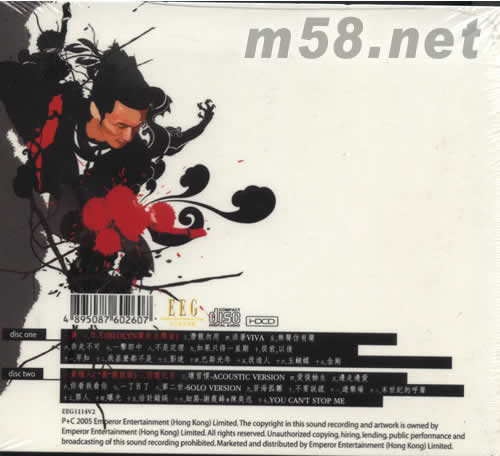 CD 1 01. 黃 02. 日月(biolyn 廣告主題曲) 03. 潛龍勿用 04. 活著VIVA 05. 無聲仿有聲 06. 非走不可 07. 一擊即中 08. 不是定理 09. 如果只得一星期 10. 從前,以后 11. 早知 12. 我甚么都不是 13. 影迷 14. 巴斯光年 15. 改造人 16. 玉蝴蝶 17. 金剛 CD 2 01. 黃種人("黃"國語版) 02. 恐龍化石 03. 壞習(xí)慣(acousic version) 04. 愛后余生 05. 邊走邊愛 06. 你看我看你 07. 一了百了 08. 第二世(solo version) 09. 苦海孤雄 10. 不要說謊 11. 游樂場 12. 末世紀(jì)的呼聲 13. 罪人 14. 曝光 15. 估計錯誤 16. 細(xì)路(謝霆鋒+陳奕迅) 17. You can't stop me