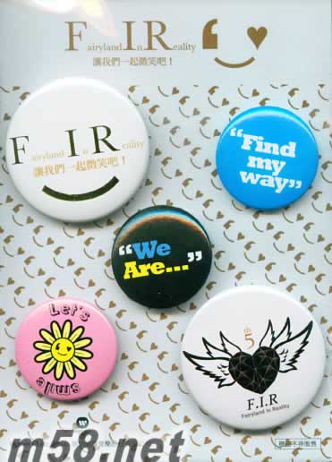 讓我們一起微笑吧 首批限贈微笑徵章5枚(m58.net) 二年沒有推出新作品的F.I.R.,當天宣布將在12月25日發行他們的第5張全創作專輯,也是他們成軍5周年紀念專輯。 F.I.R.之於世界,之於你我,就是一種愛的符號 2009年12月25日 我們與 FIR約定 無論多么困難…讓我們一起微笑吧! <預購限定> _F.I.R.成軍5周年特別企劃限量預購贈品 F.I.R.成軍5周年紀念-微笑徽章(贈品Title)一套5枚(包含):「F.I.R.成軍5周年紀念LOGO-”黑鉆羽翼”」「F.I.R.讓我們一起微笑吧」「F.I.R.微笑向日葵」「F.I.R.-we are…」「F.I.R.-FIND MY WAY」