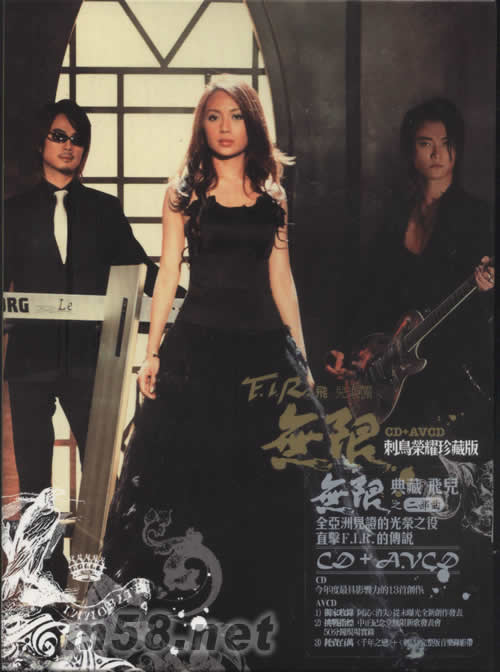 無限(刺鳥榮耀珍藏版)(m58.net) 全亞洲見證的光榮之役 直擊F.I.R.的傳說 今年度最具影響力的13首創(chuàng)作 AVCD 1)獨家收錄 阿沁<消失>從未曝光全新創(chuàng)作發(fā)表 2)挑戰(zhàn)指標(biāo) 中正紀(jì)念堂無限新歌發(fā)表會50分鐘現(xiàn)場實錄 3)耗資百萬<千年之戀>+<刺鳥>完整版音樂錄影帶