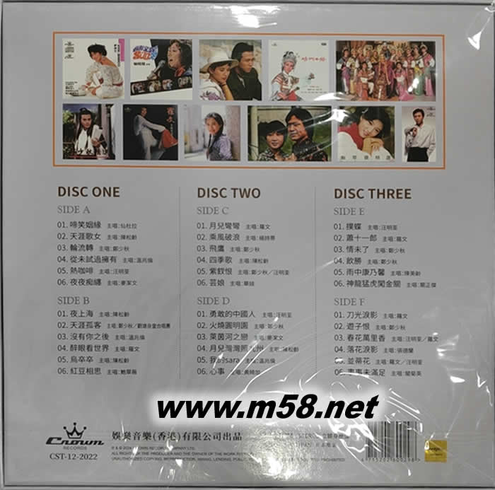 同名CD曲目僅供參考,以黑膠實物曲目為準 DISC 1 01. 小李飛刀 - 羅文 (《小李飛刀》主題曲) 02. 倚天屠龍記 - 鄭少秋 (《倚天屠龍記》主題曲) 03. 愿君心記取 - 張德蘭 (《陸小鳳》插曲) 04. 書劍恩仇錄 - 鄭少秋 (《書劍恩仇錄》主題曲) 05. 近代豪俠傳 - 關正杰 (《近代豪俠傳》主題曲) 06. 誓要入刀山 - 鄭少秋 (《陸小鳳之武當之歌》主題曲) 07. 鮮花滿月樓 - 張德蘭 (《陸小鳳》插曲) 08. 陸小鳳 - 鄭少秋 (《陸小鳳》主題曲) 09. 決戰前夕 - 鄭少秋 (《陸小鳳》插曲) 10. 絕代雙嬌 - 羅文 (《絕代雙嬌》主題曲) 11. 楚留香 - 鄭少秋 (《楚留香》主題曲) 12. 留香恨 - 鄭少秋 (《楚留香》插曲) 13. 圓月彎刀 - 汪明荃/羅文 (《圓月彎刀》主題曲) 14. 黃帝子孫 - 鄭少秋 (《新蜀山劍俠》主題曲) 15. 熊熊圣火 - 鄭少秋 (《倚天屠龍記》插曲) 16. 楊門女將 - 汪明荃 (《楊門女將》主題曲) 17. 無敵是最寂寞 - 鄭少秋 (《一劍鎮神州》插曲) 18. 一劍鎮神州 - 鄭少秋 (《一劍鎮神州》主題曲) DISC 2 19. 愛在心內暖 - 鄭少秋/李芷玲 (《流氓皇帝》插曲) 20. 狂潮 - 關菊英 (《狂潮》主題曲) 21. 家變 - 羅文 (《家變》主題曲) 22. 心有千千結 - 鐘玲玲/石修 (《心有千千結》主題曲) 23. 田園春夢 - 伍衛國/關菊英 (《巫山盟》插曲) 24. 京華春夢 - 汪明荃 (《京華春夢》主題曲) 25. 強人 - 羅文 (《強人》主題曲) 26. 用愛將心偷 - 汪明荃 (《千王之王》主題曲) 27. 烽火飛花 - 鄭少秋 (《烽火飛花》主題曲) 28. 萬水千山總是情 - 汪明荃 (《萬水千山總是情》主題曲) 29. 做人愛自由 - 鄭少秋 (《流氓皇帝》主題曲) 30. 夢里幾番哀 - 鮑翠薇 (《決戰玄武門》主題曲) 31. 千王群英會 - 汪明荃 (《千王群英會》主題曲) 32. 笑看風云 - 鄭少秋 (《笑看風云》主題曲) 33. 從不放棄 - 鄭少秋 (《天地男兒》主題曲) 34. 天虹 - 汪明荃 (《天虹》主題曲) 35. 男兒無淚 - 鄭少秋 (《天地男兒》插曲) 36. 歲月無情 - 鄭少秋 (《大時代]主題曲)