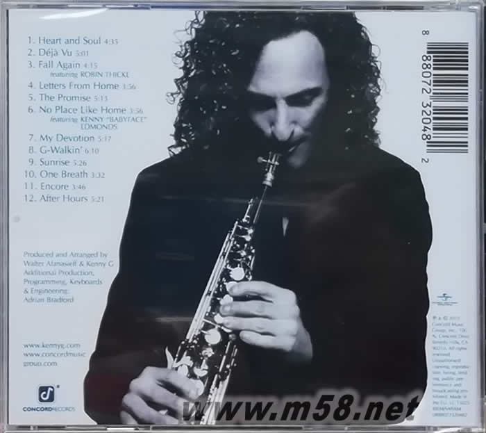 1. Heart And Soul 今生惟一 2. Déjà Vu 似曾相識 3. Fall Again – featuring Robin Thicke 舊愛最美~~創作歌手才子羅賓西克跨刀助唱 4. Letters From Home 濃郁鄉情 5. The Promise 緣定今生 6. No Place Like Home – featuring Kenny “Babyface” Edmonds 歸心似箭~~巨星「娃娃臉」友情相挺 7. My Devotion 愛妳如一 8. G-Walkin` 悸動的心 9. Sunrise日昇之美 10. One Breath 一顰一笑 11. Encore 再續前緣 12. After Hours 魅惑夜情