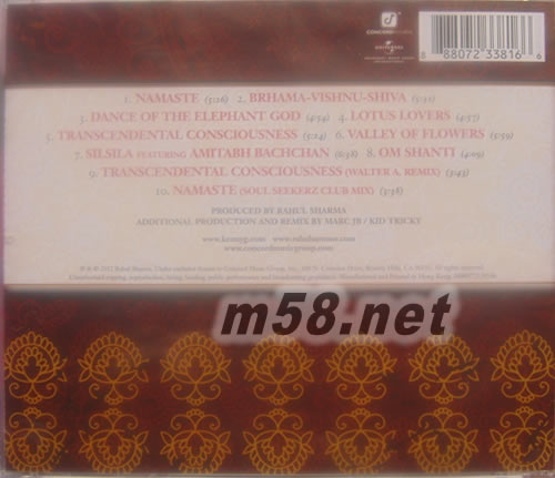 1. Namaste 2. Brhama-Vishnu-Shiva 3. Dance Of The Elephant God 4. Lotus Lovers 5. Transcendental Consciousness 6. Valley Of Flowers 7. Silsila 8. Om Shanti 9. Transcendental Consciousness (Walter A. Remix) 10. Namaste (Soul Seekerz Club Mix)