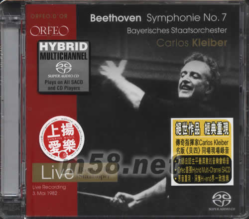 貝多芬第7交響樂(lè)BEETHOVEN SYMPHONIE NO 7 CARLOS KLEIBER指揮SACD(m58.net) 小克萊伯的貝多芬交響曲就不多介紹了,他指揮的貝多芬第五交響曲早已為大家所推崇。如果說(shuō)人們對(duì)貝五的最佳版本尚有一定爭(zhēng)議的話,那么貝多芬《第七交響曲》仿佛就是為小克萊伯所量身訂作,熱情如火的節(jié)奏律動(dòng)被他演繹的淋漓盡致,克萊伯的版本是沒(méi)有任何爭(zhēng)議的最佳版本。而今次為大家介紹的大師在1982年5月2/3日,與巴伐利亞國(guó)家管弦樂(lè)團(tuán)在慕尼黑的國(guó)立劇場(chǎng)舉行卡爾.伯姆的追思音樂(lè)會(huì),演奏了貝多芬第四、第七號(hào)交響曲。前半場(chǎng)演出的第四交響曲在1993年由Orfeo發(fā)行CD,下半場(chǎng)的第七被塵封多年于2006年1月以SACD的形式面世。與此同時(shí)該版本是克萊伯本人認(rèn)為生平最滿意的音樂(lè)會(huì)錄音,Orfeo更首次采用了Hybrid Multi-Channel SACD進(jìn)行制作發(fā)售,可以說(shuō)是完美地再現(xiàn)了這個(gè)經(jīng)典的一刻,無(wú)論你是音樂(lè)或音響愛(ài)好者這個(gè)版本都不容錯(cuò)過(guò)。