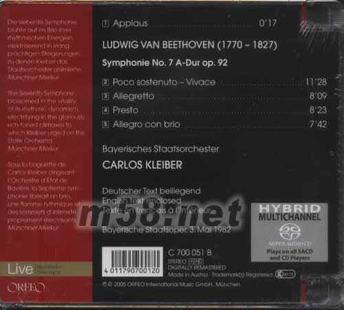 貝多芬第7交響樂(lè)BEETHOVEN SYMPHONIE NO 7 CARLOS KLEIBER指揮SACD專輯背面圖片