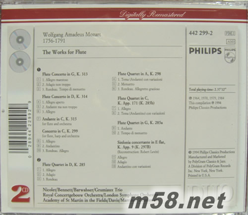 莫扎特長(zhǎng)笛作品THE WORKS FOR FLUTE(PHILIPS系列老版)專(zhuān)輯背面圖片