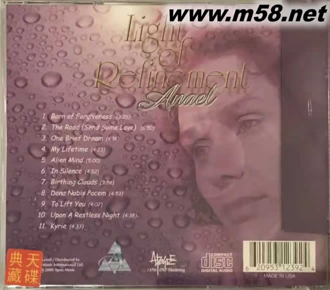 晨曦露珠 LIGHT OF REFINEMENT 新世紀純音樂 金版(m58.net) 這是一張很棒的CD,因為音樂令人放松且非常優(yōu)美,放松,祈禱或冥想。 迷人的,清新的聲音生于遙遠的恒星閃耀,未知世界的燦爛之中,遠離迷人的新鮮聲音,遠離遙遠的無限邊界,它將深沉的原始混亂和噩夢轉變?yōu)殡y以形容的美麗事物。來到地球來協調我們的世界,她的名字叫阿奈爾(Anael),她的歌聲中有一種超凡脫俗的東西,它不是來自這個地球的,她從什么星際維度帶給我們她神奇的歌聲,是什么使她來到我們這里的?也許有愛嗎? 從像凱里(Kyrie)這樣雄偉的作曲的最初幾秒鐘開始,到無刺的裸露的《一個簡短的夢》,再到深思熟慮的和平的《我的一生》,不費吹灰之力就可以欣賞阿納爾的歌,她的所有歌曲都是美麗的。浪漫主義和精致的歌詞,Anael美妙的聲音編織出薄薄的蕾絲花邊,像柔軟的繭一樣包裹著聽眾,仿佛是用最精致的絲綢制成的那樣。純凈的觸感使聲音溫暖,愛撫,鎮(zhèn)定和凈化。專輯名稱“ Light Of Refinement”與Anael歌曲中表達的想法完全吻合,我必須說這張專輯是這位藝術家的首張專輯,于1997年發(fā)行,在享有盛名的New Age Voices的Top 35中停留了五個月。 “精致之光”一位名為Anael的新星出現在新時代音樂的天空中。 當談到阿奈爾時,一個人不得不提一個人,沒有他,這個出色的計劃是不可能的,這是詩人,制片人和音樂家布拉德菲爾德,他的安排精致,非常精確,并很好地表達了阿奈爾的聲音。他的工具是軟的,而在同一時間豐富,各種色調紋理所有這些組合物也非常悅耳動聽。 Anael的甜美,令人難以忘懷的人聲與Bradfield郁郁蔥蔥的平靜音景相結合,創(chuàng)造出一個充滿聲音愉悅感的美麗環(huán)境?!?Kyrie”基于羅馬天主教禮儀,但僅著重于歌曲中奇妙的人聲和音樂質感非常容易那使您流連忘返,“一個簡短的夢想”發(fā)現Anael將新時代與爵士樂融為一體,而且效果如此之好,也許天堂的夜總會在關閉時間播放此樂曲?“我的一生”聽起來像是以前的雨滴落在我身上踏上聲音的和諧旅程,《沉寂》是一首沉思的歌曲,讓您放松和享受;《異形》中,阿納爾(Anael)帶來強勁的鋼琴和弦,并帶有節(jié)奏鼓聲部分,似乎與您的節(jié)奏相呼應。介意。”出生云“憂郁地看著在春天的一天,白色無形的形狀從頭頂上方經過。“不安的夜晚”包括大鍵琴的撫摸,給作品賦予了中世紀的氛圍。“舉起你”確實可以舉起,柔和的小號聽到了一個天使的到來,送走了您的煩惱。再次改編自羅馬天主教禮儀的“ Dona Nobis Pacem”改變了CD的節(jié)奏,變成了幾乎是輕柔的搖滾歌曲,但是弦樂優(yōu)美。 “ Born Of Forgiveness”再次使用圖形化的雨滴和簡單的鋼琴/弦樂安排?!?The Road(Send Some Love)和合成器結合了Anael的聲音和和聲,這首歌成為CD上最好的歌曲之一)“幾乎可以被視為流行歌曲,憑借其強勁的弦樂和令人贊嘆的動聽旋律,這首歌曲將關閉CD,使聽眾渴望更多。