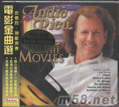 AT THE MOVIES電影金曲選(m58.net) 請點看產(chǎn)品正、背面大圖 國際知名小提琴大師ANDRE RIEU安德烈 瑞歐! 精心演繹十六首電影名曲 柔情的演奏琴音細致動人 美國天龍發(fā)燒級通透錄音 ANDRE RIEU精心演繹十六首經(jīng)典電影名曲,首首精彩,包括:殉情記ROMEO AND JULIET “LOVE THEME齊瓦哥醫(yī)生DR ZHIVAGO “LARA‘S THEME/SOMEWHERE MY LOVE”鐵達尼號TITANIEC“MY HEART WILL GO ON ”,大開眼界“EYES WIDE WHUT”THE SECOND WHLTZ“,教父THE GODFATHER”MAIN TITLE“,仙樂飄飄處處聞THE XOUND OF MUSIC ”EDELWEISS“等等,數(shù)之不盡,讓聽眾一次過回憶起多個經(jīng)典場面,美國DENON天龍發(fā)燒錄音,音色通透,不容錯過。