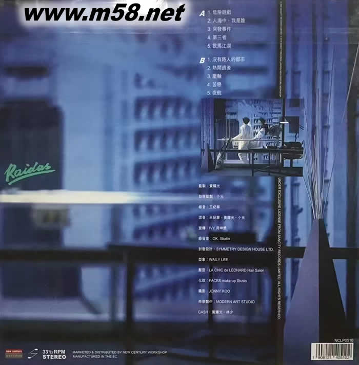 危險游戲 Raidas 黑膠 藍色封面專輯背面圖片
