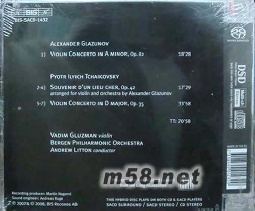 Vadim Gluzman小提琴演奏Tchaikovsky & Glazunov 小提琴協奏曲 SACD(m58.net) Vadim Gluzman, 小提琴violin Bergen Philharmonic Orchestra, orchestra卑爾根(挪威)愛樂樂團伴奏 Andrew Litton, 指揮conductor