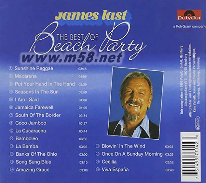 價格為估,以實(shí)到貨為準(zhǔn)! Best of Beach Party(m58.net) 國的詹姆斯·拉斯特樂隊是世界著名的三大輕音樂樂隊之一。是世界樂壇歷史上唱片銷售最多的樂團(tuán)。 創(chuàng)建人詹姆斯·拉斯特生于1929年。他擅于吸收各種音樂風(fēng)格,如古典音樂、鄉(xiāng)村音樂、搖滾音樂、拉丁音樂等采華,同時又致力于各國民族音樂的發(fā)掘。他曾制作了俄羅斯、英格蘭、蘇格蘭、愛爾蘭、美國等音樂專輯。因此,詹姆斯·拉斯特樂團(tuán)的音樂深受世界各地聽眾的歡迎,到80年代末,他已發(fā)表了50余個專輯唱片,總銷量達(dá)5千萬張。 詹姆斯·拉斯特樂團(tuán)的音樂常常透露出歡樂愉快和樂觀的氣氛,有一種不可抗拒的吸引力和動人心弦的感染力。不管是古典音樂、流行歌曲或民族民間音樂,都滲透著他自己的風(fēng)格。一般人認(rèn)為,古典音樂比較艱深難懂,但他以現(xiàn)代手法加以改編后,古典樂曲便注入了一種新的生命力,而且以使人親近和了解的方式演奏出來,使從未聽過歐洲古典音樂作品的人,也能享受到古典音樂的美妙。平時,他經(jīng)常與樂隊隊員研究、探討樂曲的改編和演奏方式,使隊員感到人人有份,從而達(dá)到協(xié)調(diào)一致,充分體現(xiàn)他的要求。