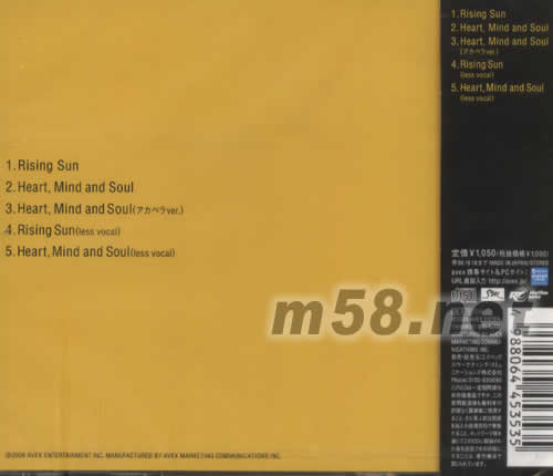 CD 1.RISING SUN 2.HEART,MIND AND SOUI 3.HEART,MIND AND SOUI 4.RISING SUN(IESS VOCAL) 5.HEART,MIND AND SOUL(IESS VOCAL)