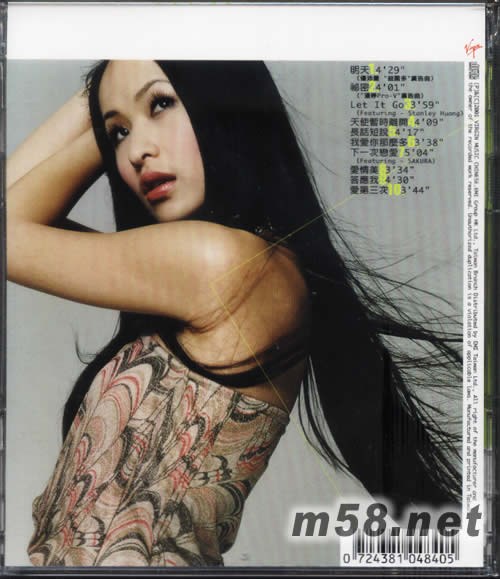 01.明天 (優(yōu)沛蕾"益菌多"廣告曲) 02.秘密 ("潘婷Pro-V"廣告曲) 03.Let It Go 04.天使暫時(shí)離開(kāi) 05.長(zhǎng)話短說(shuō) 06.我愛(ài)你那么多 07.下一次戀愛(ài) 08.愛(ài)情美 09.答應(yīng)我 10.愛(ài)第三次
