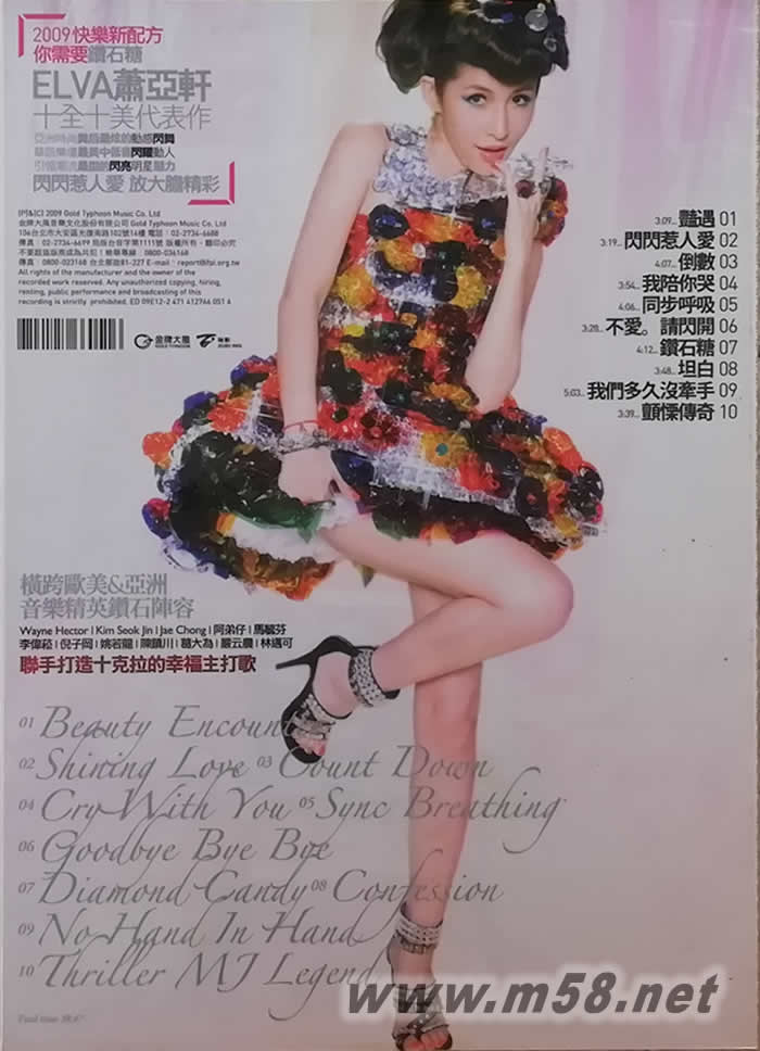鉆石糖(臺版)(m58.net) 贈品已送完 ELVA蕭亞軒 十全十美代表作 亞洲時尚舞后最炫的動感閃舞 華語樂壇最美中低音閃耀動人 引領潮流最型閃亮明星魅力 閃閃惹人愛 放大膽精彩