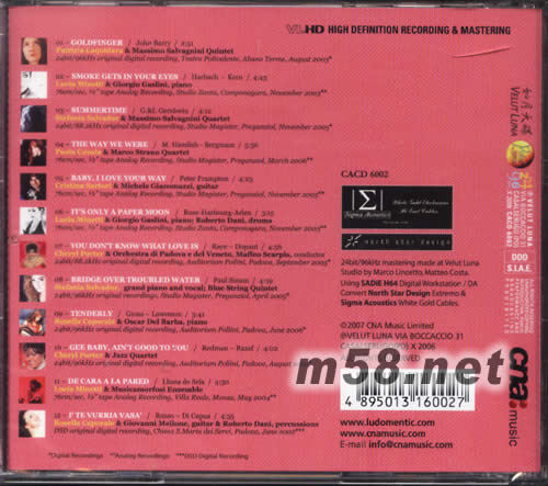 01.Goldfinger 02.Smoke gets in your eyes 03.Summertme 04.The way we were 05.Baby,ilove your way 06.Itsinly a paper moon 07.You dont know what love is 08.Bridge over troubled water 09.Tenderly 10.Gee baby,aint good to you 11.De cara ala pared 12.I’te vurria vasa’