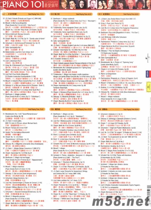 PIANO 101: YOUR FAVORITE (6CD) 最愛鋼琴專輯背面圖片