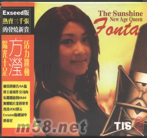芳達 THE SUNSHINE NEW AGE QUEEN(m58.net) 請點看產品正、背面大圖 聽了這張專輯,你會有一種錯覺,封面上這位美女歌手分明長了一副東方面孔,而聲音卻是純美國式的,中氣十足,讓人聯想此人的嗓音發育太過發達,可能西餐營養過足的緣故?總之,你不由得會聯想到發出如此渾厚的聲音的,應該是一位中氣十足的肥碩的黑人婦女,但是眼前的歌手確是一位嬌美的東方面孔的美女! EXSEED版 熱賣三千張的發燒新貴 被香港4A協會主席用公司內長期播放的BGM無懼唱片業的寒冬 EXSEED版橫掃中港臺星。