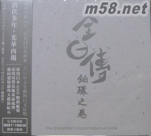 全日傳 鉑環(huán)之卷 SACD限量版(m58.net) 完全限量版單層 SACD 1 + 1 DSD CD 風雨同路30年 伴您同行真經(jīng)典 昔日中文金曲的日文原唱 濳伏多年 光華再現(xiàn) 採用日本DSD數(shù)碼編製,原裝母帶技術(shù)重新處理, 邁向發(fā)燒靚聲天碟新紀元 (單層SACD只可在SACD機上播放,DSD CD可在任可CD機播放