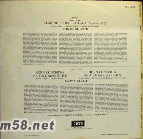 Mozart Clarinet Concerto in A Major K.622 1. 1st Movement Allegro 2. 2nd Movement Adagio 3. 3rd Movement Rondo; Allegro Gervase De Peyer Horn Concerto No.1 in D Major K.412 4. 1st Movement Allegro 5. 2nd Movement Allegro Horn Concerto No.3 in E Flat Major K.447 6. 1st Movement Allegro 7. 2nd Movement Romanze; Larghetto 3. 3rd Movement Allegro Barry Tuckwell