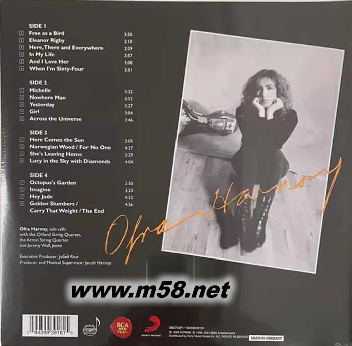 大提琴女伶 OFRA HARNOY IMAGINE 雙黑膠(m58.net) 哈諾伊演奏披頭士改編曲,女大提琴家哈諾伊不僅有美麗而性感的容貌,而且有著精湛的技巧,被盛贊“為大提琴而生”。這張專輯是她演奏披頭士精典作品,包括:《Hey Jude》,《Yesterday》,《In My Life》,《Norwegian Wood》等。180克雙黑膠。