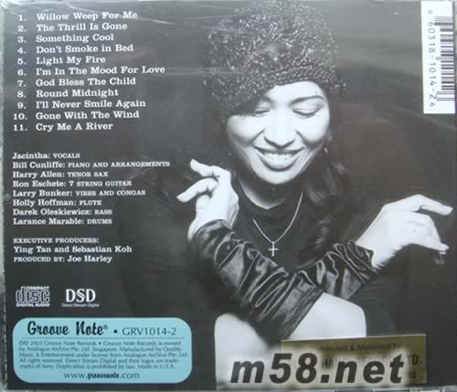 JACINTHA IS HER NAME DSD(m58.net) 潔辛塔向茱莉倫敦致敬的專輯:Cry Me a River,讓您體驗另一種感動。 Julie London,60-70年代的知名女歌手。兩年前逝世之后,仍以她知名的「Cry me a river」擁有廣大的歌迷與支持,而她同時也是Jacintha最喜愛的歌手之一。因此她以此專輯來向Julie London致敬與追思。 潔辛塔的歌聲有種讓人一聽難忘的魔力,那種如同化作千絲萬縷將你纏繞的嗓音,真可說是百聽不厭。再加上名製作人Joe Harley與錄音工程師Mike Ross兩人的攜手合作,打造出了這張細緻、極具臨場感的專輯