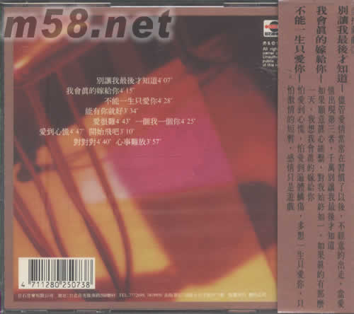 價(jià)格為估,以實(shí)到貨為準(zhǔn)! 真情流露(m58.net) 請(qǐng)點(diǎn)看產(chǎn)品正、背面大圖 別讓我最后才知道 盡管愛(ài)情常常在習(xí)慣了以后,不經(jīng)意的出走,當(dāng)愛(ài)情出現(xiàn)第三者,千萬(wàn)別讓我最后才知道 我會(huì)真的嫁給你 如果愿意真心維護(hù),對(duì)我始終如一,如果真的有那么一天,我想我會(huì)真的嫁給你 不能一生只愛(ài)你 怕愛(ài)到心慌,怕愛(ài)到遍體鱗傷,多想一生只愛(ài)你,只怕激情的短暫,感情只是游戲.