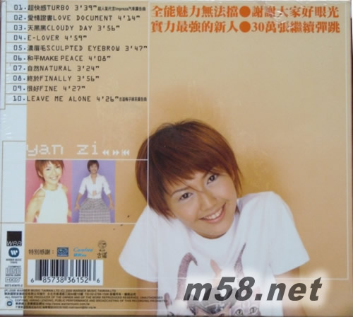Yan Zi 同名專輯(m58.net) 歌功頌德壇超級姿優生! 當然賣超好 寫的好 長的好 唱的好 超棒成績單 發片7天勇奪各大唱片行排行榜冠軍 全能女生孫燕姿 全能魅力無法擋 謝謝大家好眼光 實力最強的新人 30萬張斷績彈跳