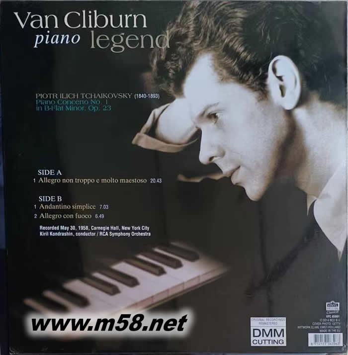 柴可夫斯基 : 第一號鋼琴協(xié)奏曲TCHAIKOVSKY : PIANO CONCERTO NO.1 DMM黑膠(m58.net) ·克萊本(Van·Cliburn,1934年7月12日-2013年2月27日),出生于路易斯安那州,美國鋼琴演奏者。 4歲登臺演出,13歲在德克薩斯州的鋼琴比賽上獲獎后受聘于休斯敦交響樂團,15歲進入紐約茱莉亞學院師從Rosina·Lhevinne學琴。1958年參加原蘇聯(lián)莫斯科柴科夫斯基國際鋼琴比賽,獲一等獎,蜚聲國際樂壇。1978年宣布退出樂壇,1987年才應里根總統(tǒng)之邀,在白宮為戈爾巴喬夫的到來重登樂壇。1989年曾重返蘇聯(lián),與費城管弦樂團合作演出,自此事業(yè)和名望達到了一個新的高峰。2003年,獲總統(tǒng)自由勛章。
