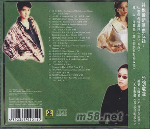 金枝玉葉 電影原聲碟(m58.net) 請點看專輯正、背面大圖 看電影聽滾石 盛放著19株無價的音樂花朵 朵朵綻放著醉心的電影余韻 蘇慧倫--再一次純真演出最新單曲[少女問] 李迪文--衷情投入作曲編曲自演主題原曲[追]