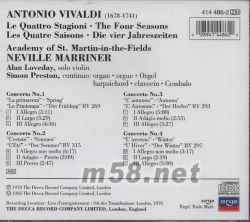 VIVALDI THE FOR SEASONS 四季(24K金日本版)(m58.net) 指揮:NEVILLE MARRINER ALAN LOVEDAY SOLO VIOLIN