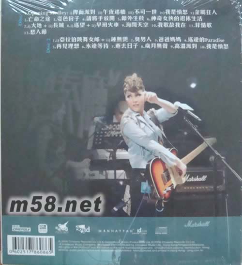 CD 1 01. Opening Medley: i) 俾面派對 ii) 午夜迷墻 iii) 不可一世 iv) 我是憤怒 v) 金屬狂人 02. 亡命之途 03. 姿色份子 04. 請將手放開 05. 節外生枝 06. 神奇女俠的退休生活 07. 大地 + 長城 08. 遙望 + 早班火車 09. 海闊天空 10. 我歌故我在 11. 菲情歌 12. 愁人節 CD 2 01. 亞拉伯跳舞女郎 + 鍾無艷 02. 臭男人 03. 爸爸媽媽 04. 遙遠的Paradise 05. 再見理想 06. 永遠等待 07. 逝去日子 08. 歲月無聲 09. 高溫派對 10. 我是憤怒