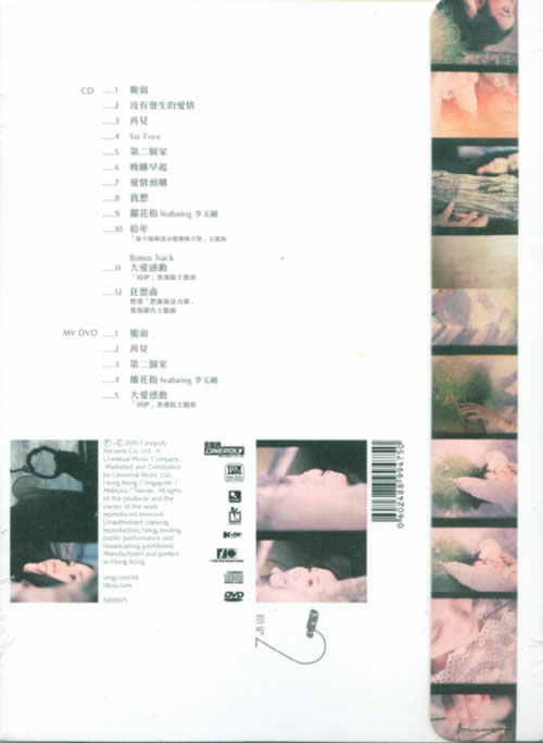 CD 01. 脆弱 02. 沒有發生的愛情 03. 再見 04. So Free 05. 第二個家 06. 晚睡早起 07. 愛情預購 08. 我想 09. 蘭花指 (featuring李玉剛) 10. 拾年 (“第十屆華語音樂傳媒大獎”主題曲) Bonus Track: 11. 大愛感動 (“同伊”香港版主題曲) 12. 狂想曲 (豐澤“想像就是力量”電視廣告主題曲) DVD Music Videos 01. 脆弱 02. 再見 03. 第二個家 04. 蘭花指 (featuring李玉剛) 05. 大愛感動 (“同伊”香港版主題曲)