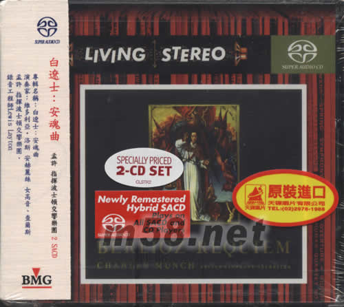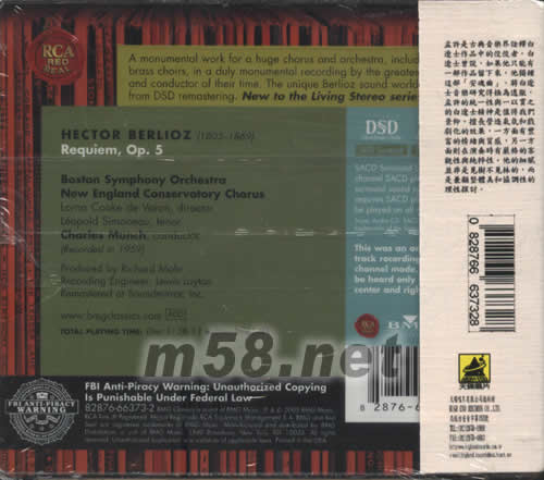 HECTOR BERLIOZ(1803-1869) REQUIEM,OP。5 BOSTON SYMPHONY ORCHESTRA NEW ENGLAND CONSERVATORY CHORUS LORNA COOKE DE VARON ,DIRECTOR LEOPOLD SIMONEAU,TENOR CHARLES MUNCH CONDUCLOR (RECORDED IN 1959) PRODUCED BY RICHARD MOHR RECORDING ENGINEER:LEWIS LAYTON REMASTERED OF SOUNDMIRROR,INC