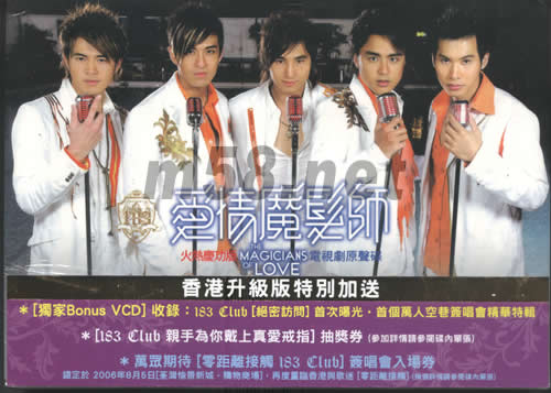 愛情魔發師 電視原聲帶(香港升級版)(m58.net) 愛情魔發師 香港升級版特別加送 〔獨家Bonus VCD〕: 收錄 183 Club〔絕密訪問〕首次曝光 首個萬人空巷簽唱會精華特輯 [183CLUB 親手為你戴上真愛戒指]抽獎券(參加詳情參閱碟內單張)