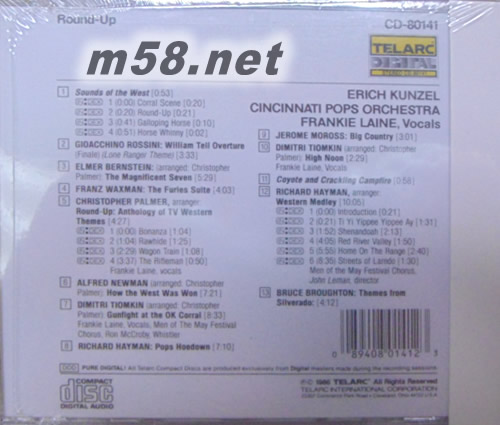 ROUND UP 西部牛仔圍捕(24K金版)(m58.net) 指揮:ERICH KUNZEL 孔澤爾的領導與Telarc高水平的錄音科技下,辛辛那堤通俗管弦樂團儼然成為流行交響樂的代名詞,至今發行過許多表演出色、又兼具音響考驗能力的高水平錄音。其中最奪目的莫過于一系列氣勢磅礡,音效又設計的十足花俏的科幻電影音樂。 《西部牛仔圍捕-Round Up》是覺得辛辛那提至今構思最出色的專輯作品之一,結合了古今名家對西部時代與西部精神最精彩的音樂描寫,口耳相傳,充滿時代與歷史情懷的民俗音樂,加上娛樂性與話題性十足的音效設計,別致而生動的勾勒出一幅神采迷人的西部風情畫,相當令人悠游神往,其中另一類知名的西部電影音樂,即顏尼歐.莫里克奈的《Spaghetti Western》并未收錄其中,我想并非刻意忽略莫里克奈的音樂成就,而是因為這張專輯以營造正統美國西部本土色彩為訴求,以充滿懷舊情緒的刻劃,展現西部時代的刻苦奮斗與積極精神