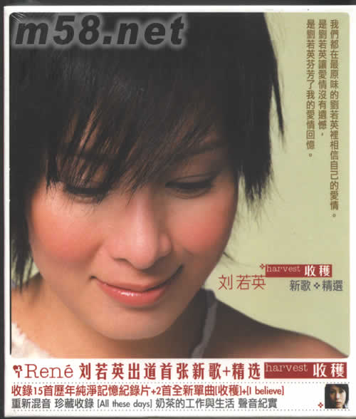 收獲(m58.net) Rene劉若英出道首張新歌+精選 收錄15首歷年純凈記憶紀(jì)錄片+2首全新單曲[收獲]+[I believe] 重新混音 珍藏收錄[All these days] 奶茶的工作與生活 聲音紀(jì)實 我們都在最原味的劉若英里相信自己的愛情 是劉若英讓愛情沒有遺憾 是劉若英芬芳了我的愛情回憶 我們的愛情因劉若英而收獲豐碩 當(dāng)我們唱起劉若英 每一首都是認(rèn)真愛過的自己 2001夏日全新動感單曲>>> 收獲__[很愛很愛你]、[后來]金牌組合Kiroro+施人誠,詞曲合作再展情歌芬芳暖意 I Believe__因為相信才能不遺憾,因為相信才能再愛。聽劉若英溫柔唱出我們對愛情的依賴 正版POWER CD收錄 劉若英純凈影像代表作[很愛很愛你]MV+奶茶歷年電視CF廣告精華紀(jì)錄