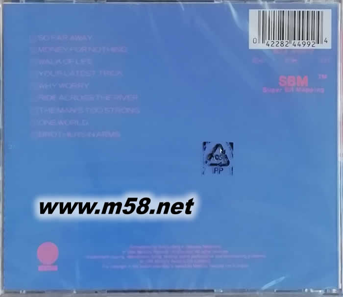 1 SO FAR AWAY 2 MONEY FOR NOTHING 3 WALK OF LIFE 4 YOUR LATEST TRICK 5 WHY WORRY 6 RIDE ACROSS THE RIVER 7 THE MAN‘S TOO STRONG 8 ONE WORLD 9 BROTHERS IN ARMS