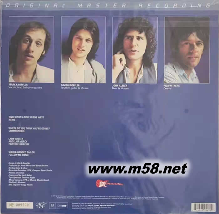 Communique 公報 45轉 雙黑膠(m58.net) 樂隊靈魂人物Mark Knopfler無與倫比的吉他演奏技巧。帶有很濃的說唱風格,磁性十足的聲音,都令無數歌迷為之瘋狂。再溶入了已讓人遺忘的早期搖滾樂和清新脫俗的民謠,由吉它緩緩倒出慵懶而恬靜的氣氛。45轉雙黑膠,限量編號版。