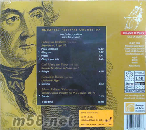 貝多芬第七交響曲SACD(m58.net) 響譽世界的大師級指揮家伊凡.費沙爾(Ivan Fischer)與合作無間的布達佩斯節(jié)日樂團(Budapest Festival Orchestra)曾得到多項國際性音樂大獎,包括<留聲機年度編輯推介>大獎等,足以殿定這對絕配組合於國際樂壇上的崇高地位。這次他們伙拍單簧管演奏家艾錫斯(Akos Acs)攜手再創(chuàng)高峰,包括演繹[貝多芬的 ’A大調(diào)第7交 響曲Op.92’(Beethoven ‘Symphony Nr.7 opus 92’ )]、[韋伯的 ’F小調(diào)第1號單簧管協(xié)奏曲’(Weber ‘Concerto for Clarient in F minor No.1’ )]、[羅西尼的歌劇 ‘意大利姑娘在阿爾及利亞’的序曲(Rossini ‘Sinfonia of [L’Italiana in Algeri]’)]及[韋恩斯的 ’給大樂隊C小調(diào)第4交響曲作品23(Sinfonia a grand orchestre, no.IV in C minor Op.23)]等。重量級的組合,加上SACD發(fā)燒錄音效果,將澎湃激昂的現(xiàn)場真實感完全顯現(xiàn),讓你能親耳體驗這股震撼力!
