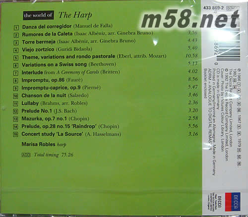 發行公司: DECCATHE WORLD OF THE HARP 版 號(NO): 4338692 條碼(UPC): 02896338692