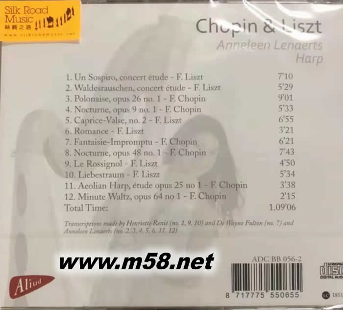 給豎琴的作品選 肖邦/李斯特作品 Chopin & Liszt: Works for Harp Anneleen Lenaerts(m58.net) Anneleen Lenaerts (豎琴) 安妮莉恩豎琴,包括:李斯特:音樂會練習曲/浪漫曲/愛之夢等,肖邦:夜曲/幻想曲/圓舞曲等,安妮莉恩23歲時曾任維也納愛樂豎琴首席,整張專輯彌漫著無限詩意與浪漫。 1. 曾獲多個國際豎琴比賽大獎的比利時年輕女豎琴演奏家安妮莉恩.雷納特斯(Anneleen Lenaerts)於2010年12月開始,當時以23歲之齡被委任為維也納愛樂樂團(Vienna Philharmonic Orchestra)的首席豎琴手,其出色的演奏技巧廣受認同和肯定。