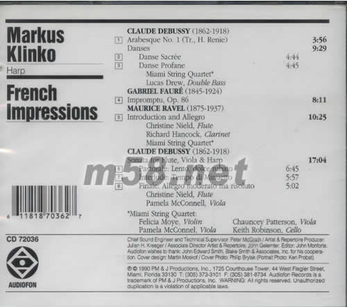 MARKUS KLINDO HARP德彪西 豎琴專輯背面圖片