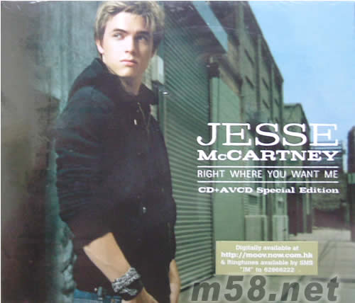 RIGHT WHERE YOU WANT ME(CD+AVCD特別版)(m58.net) 用“陽光男孩”、“青少年偶像”、“少女殺手”…等等字眼來形容杰西麥卡尼,僅只能形容出不到十分之一的他。這位有著帥氣外貌的18歲金發碧眼男孩,卻希望大家從他身上看到的不是有形的外表,而是更多無形且具有深度的特質,也就是他的才華。這位從小就踏入戲劇界的歌手是美國家喻戶曉的好演員,他為演戲所投注的心力從他兩度入圍艾美獎日間節目類最佳年輕男演員獎項就可窺知一二,但杰西更大的興趣與抱負是在音樂方面,他在14歲時就加入了男孩團體Dream Street,該團的首張同名專輯還創下白金銷售佳績,雖然后來樂團解散,但杰西對音樂的熱情絲毫沒有減褪,他在繼續維持戲劇演出之余,還是努力充實自己,在創作與演唱方面不斷吸收更多不同的養分。 對各種類型音樂兼容并蓄的涉獵讓杰西的唱腔與創作含括了搖滾、靈魂、流行與舞曲等等不同風格,他的超齡成熟歌聲卻還是能夠讓每一個音符與每一句歌詞透射出青春的氣息,無怪乎花了兩年時間精心琢磨的首張專輯“天使的心(Beautiful Soul)”一推出就大受歡迎,獲得全美專輯榜第15名的好成績。該張專輯中所選出的兩首單曲“Beautiful Soul”以及“She’s No You”都是備受歡迎的熱門單曲,“Beautiful Soul”亦打入全美單曲榜第16名。杰西的創作與演唱實力已藉他的首張專輯建立起口碑,他的巡回演唱會在全球各地票房處處告捷、歌曲在電視臺及電臺獲得超高的點播率、在2005年青少年直選(Teen Choice Awards)中連得三項大獎-“最佳跨界藝人”、“最佳男歌手”以及“最具突破男藝人”-,并且獲得2005全美音樂獎“最佳新進藝人”獎項提名….等等睥睨同儕的成就在在證明了杰西正創立了一股屬于自己的新風潮,這股風潮相對地也反映出杰西對音樂事業積極的態度和他天賦加上努力的雙倍成效。