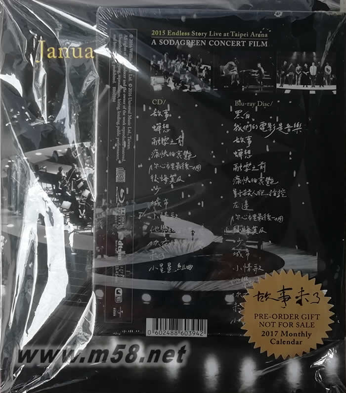 蘇打綠 Sodagreen故事未了音樂電影 CD+BD(臺灣預購版)(m58.net) 預購贈品:電影年歷本乙本(隨專輯提領) 蘇打綠 《故事未了》音樂電影 出道12年來 第一部音樂電影 休團3年前 的完美呈現 這次收錄成《故事未了》音樂專輯的13首歌曲,是蘇打綠的第四張live專輯,在即將休團三年之際發行,期盼為他們的音樂作品劃下完美的句點。 關於蘇打綠的音樂電影《故事未了》 蘇打綠的電影不像既定印象中的電影, 它的主角是音樂,只有音樂,沒有別的了。 每一首歌有一幕場景,每一句歌詞就是一串對白, 《故事未了》其實不過是一首歌緊接著下一首歌, 而歌與歌之間的流動,承載起每一個小小的故事; 這些故事遇見你,是我們的劇情。 蘇打綠用交響樂和搖滾樂交織的音符, 在∞無限輪迴的舞臺上,在圓形環繞的大螢幕里, 去表現他們心中音樂最美的那個樣子。 沒有一個人可以看到全部,觀者只有自己全心全意的投入, 才能看透這些華麗背景,無非是為了成就音樂本身, 那種純然不需要解釋就已經被感動到淚流滿面的神奇力量。 於是主唱青峰說: 「終於有一次演唱會,我們不用去在乎那么多其他表演的形式,我們只要在乎音樂應該做什么事情,這對我們來說,是很純粹的一件事情。」 「你們,跟我們一起拍了一部電影,這部電影,是音樂。這里頭,所有的對白、劇情,只有音樂,我們只想用音樂、用作品說話。」 蘇打綠《故事未了》音樂電影曲目 蘇打綠SODAGREEN出道12年來的第一部音樂電影,休團3年前的完美呈現:這次收錄成《故事未了》音樂專輯的13首歌曲,是蘇打綠的第四張live專輯,在即將休團三年之際發行,期盼為他們的音樂作品劃下完美的句點。 關於蘇打綠的音樂電影《故事未了》蘇打綠的電影不像既定印象中的電影,它的主角是音樂,只有音樂,沒有別的了。每一首歌有一幕場景,每一句歌詞就是一串對白,《故事未了》其實不過是一首歌緊接著下一首歌,而歌與歌之間的流動,承載起每一個小小的故事;這些故事遇見你,是我們的劇情。 蘇打綠用交響樂和搖滾樂交織的音符,在∞無限輪迴的舞臺上,在圓形環繞的大螢幕裡,去表現他們心中音樂最美的那個樣子。沒有一個人可以看到全部,觀者只有自己全心全意的投入,才能看透這些華麗背景,無非是為了成就音樂本身,那種純然不需要解釋就已經被感動到淚流滿面的神奇力量。 於是主唱青峰說:「終於有一次演唱會,我們不用去在乎那麼多其他表演的形式,我們只要在乎音樂應該做什麼事情,這對我們來說,是很純粹的一件事情。」「你們,跟我們一起拍了一部電影,這部電影,是音樂。這裡頭,所有的對白、劇情,只有音樂,我們只想用音樂、用作品說話。」
