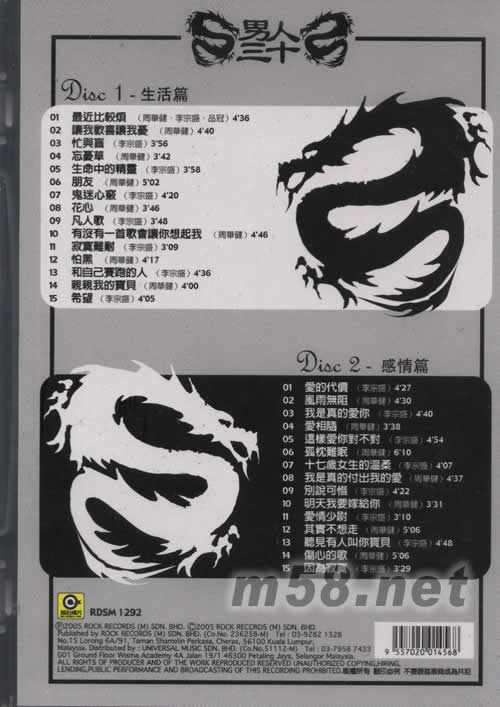 男人三十專輯背面圖片