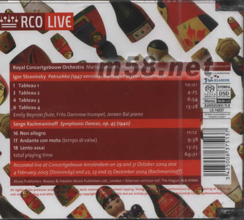 STRAVINSKY RACHMANINOFF 斯特拉文斯基 彼特魯扎卡SACD專輯背面圖片
