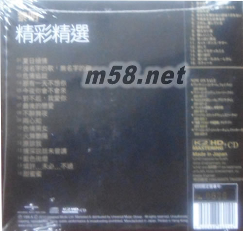 精彩精選 (K2HD) (日本獨家發行版)(m58.net) 同時出版的有: 1、黎明 精彩精選 K2HD 日本獨家發行限量版 2、張學友THE BEST OF JACKY CHEUNG K2HD 日本獨家發行限量版 3、鄧麗君 償還 K2HD 日本獨家發行限量版 4、陳慧嫻 你身邊永是我 日本獨家發行限量版 K2HD 5、軟硬天師 廣播道軟硬殺人事件 K2HD 日本獨家發行限量版 6、王菲 最精彩的演唱會 94/95 K2HD 日本獨家發行限量版 7、關淑怡 The Story of Shirley 日本獨家發行限量版 K2HD 8、張國榮 陪你倒數 日本獨家發行版 K2HD 限量版